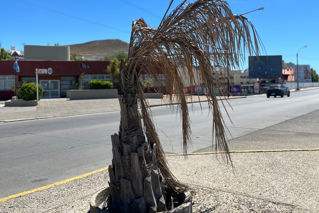 En zonas cercanas a la costa de ciudades como Puerto Madryn o Comodoro Rivadavia (Chubut), las palmeras plantadas sin la protección adecuada quedan expuestas a un destino frecuente: crecimiento limitado, estrés hídrico y daños en las hojas por efecto de la salinidad y de los embates del viento.