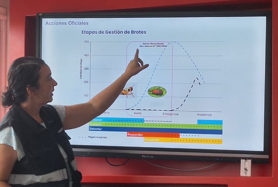Uno de los puntos clave transmitidos es que actualmente, en la Argentina, no existen productos registrados como tratamiento preventivo para esta plaga. En este escenario, la estrategia oficial se basa en la erradicación de los ejemplares afectados y en la aplicación de medidas de control para evitar la propagación del insecto.