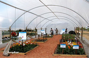 Con respecto a la floricultura a campo: se trabajó con crisantemo, dos variedades de celosía y limonium. Mientras que en floricultura bajo cubierta, se trabajó con gerbera (cinco variedades), girasol ornamental (dos variedades), gypsophyla, lisianthus y bandeja de almácigos flotantes. Las tecnologías aplicadas fueron: iluminación artificial, calefacción por manga de aire caliente, formas de conducción del cultivo, microaspersión, etc. Además, en la carpa de valor agregado, también participó floricultura: se mostró manejo de poscosecha con sales preservantes así como distintas presentaciones de ramos forales y souvenirs.